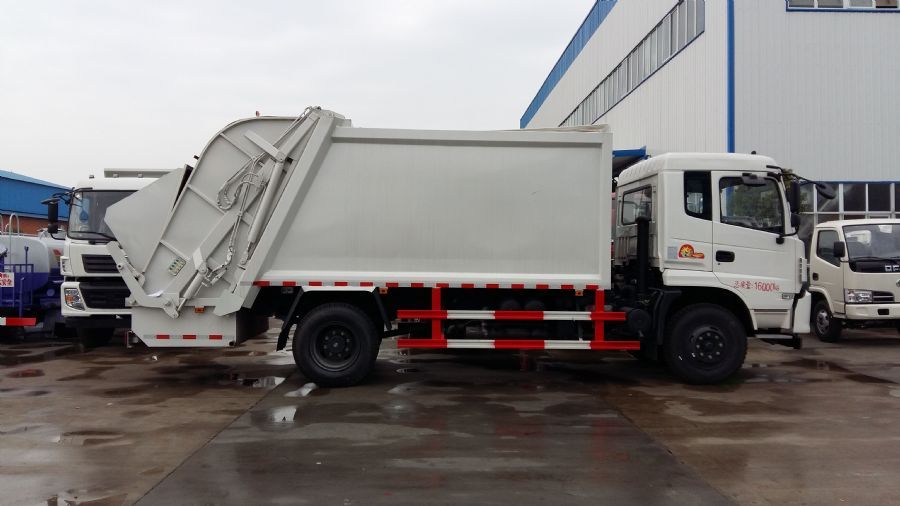 东风D913压缩式垃圾车底盘配置:原装东风底盘,轴距3.95米,新款D9方脸驾驶室,宽体带卧铺,康明斯4缸160马力新型发动机或玉柴160马力发动机,6档变速箱,3.9吨前桥,8吨后桥,9.00R-20钢丝胎带备胎,250等截面大梁,24伏电瓶,带方向助力,离合助力,气刹,加强型板簧,带暖风。