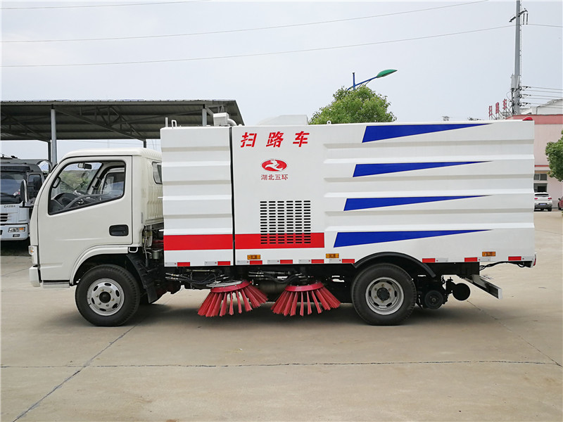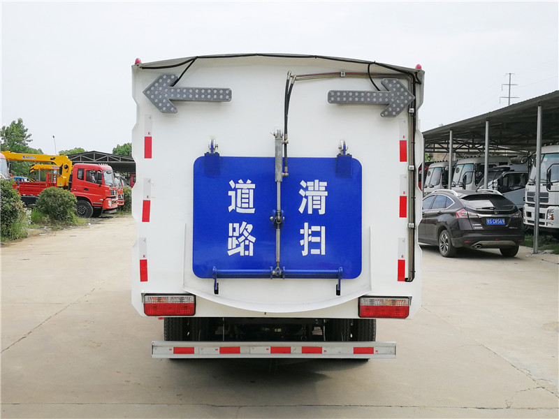 ● 清扫装置型式:中置四盘扫+后置吸嘴,扫盘可自动避障;扫盘具有3种作业模式:全扫、左前不扫、右前不扫,实现路面的清扫及吸 尘。● 吸嘴:滚动胶轮三点浮动支撑、能适应不同道路表面的清扫要求,属国内首创。● 所有紧固件均采用镀锌处理,扫盘、吸嘴等结构件均防腐防锈处理,附着力强,涂层耐腐、耐候性强;● 垃圾箱采用双层结构,坚固、耐用。内胆采用不锈钢材料制作,结构强度高,不锈蚀;● 在应急状态下,可通过设置的手动泵操纵垃圾箱升降等动作,特殊情况时能直接进入副发动机工作舱内进行检测及维修;● 垃圾箱外形采用侧部方形造型,圆弧过渡,全车比例协调、美观大方。垃圾箱侧板及顶板采用强度较高的设计,工艺简单,箱体内表 面光滑,垃圾倾倒方便无残留,且箱体外表面无焊接变形,无需补原子灰,整车造型美观。● 副发动机与风机采用离心离合器连接装置,能保证副发动机空载启动和副发动机停机时与风机自动脱离。● 采用智能化控制系统,电、液集中控制,操作简单,驾驶员可在驾驶室内完成各种动作的操作。车辆可根据用户需求加装雪铲,雾炮。