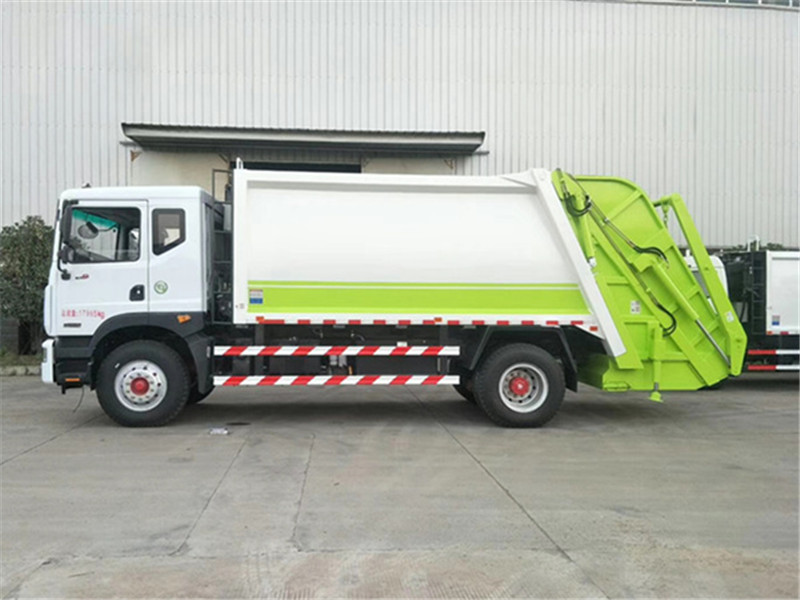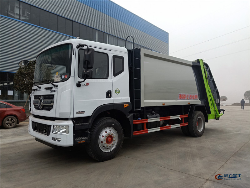 东风10方压缩式垃圾车采用机电液一体化技术,借助机、电、液联合自动控制系统,通过车厢、填装器和推铲等专用装置,实现垃圾倒入、压碎或压扁、强力装填,把垃圾挤入车厢并压实和推卸。其主要特点是垃圾收集方式简便、高效、具有自动反复压缩以及蠕动压缩功能,压缩比高,装载质量大,作业自动化,动力性、环保性好,整车利用效率高。