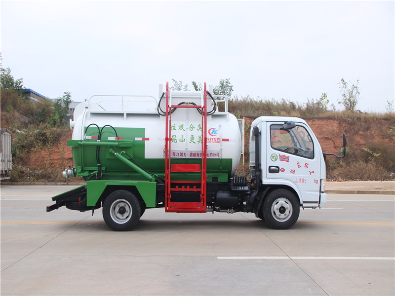 运送介质品名:泔水;介质密度:800千克/立方米,罐体有效容积:4.2立方米.罐体外型尺寸(mm):直段长×直径3200×1300,随底盘选装驾驶室,选装自卸功能高度(mm):2900。额定载质量3265kg对应驾驶室准乘人数2人;额定载质量3200kg对应驾驶室准乘人数3人;侧防护材料为Q235碳钢,右侧面提升机代替部分侧防护,左侧面侧防护为整体结构, 连接方式:焊接在付车架大梁上,后防护材料为Q235碳钢,连接方式:用结构连接件固焊在主车后端, 后部防护断面尺寸(mm):100×50×5,后部防护离地高度(mm):480,ABS厂家及型号:襄阳东风隆诚机械有限责任公司/ABS/ASR-24