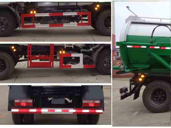 介质:餐厨垃圾,密度:800千克/立方米,罐体有效容积:8.13立方米,罐体外形尺寸(直段长×直径)(mm):3800×1600。该车右侧面配备垃圾上料装置,用于作收集餐厨垃圾。防护材料:Q235A碳钢,连接方式:左右侧面及后下部防护均采用焊接连接,后部防护断面尺寸(mm):120×50,后部防护离地高度(mm):400。 ABS系统型ABS/ASR-24V-4S/4M,ABS系统生产厂家襄阳东风隆诚机械有限责任公司。此整车长/轴距对应关系为(mm):6850/3800,7000/3950,7100/4050,7150/4100,7450/4400。当轴距为(3800mm,3950mm)时,整
