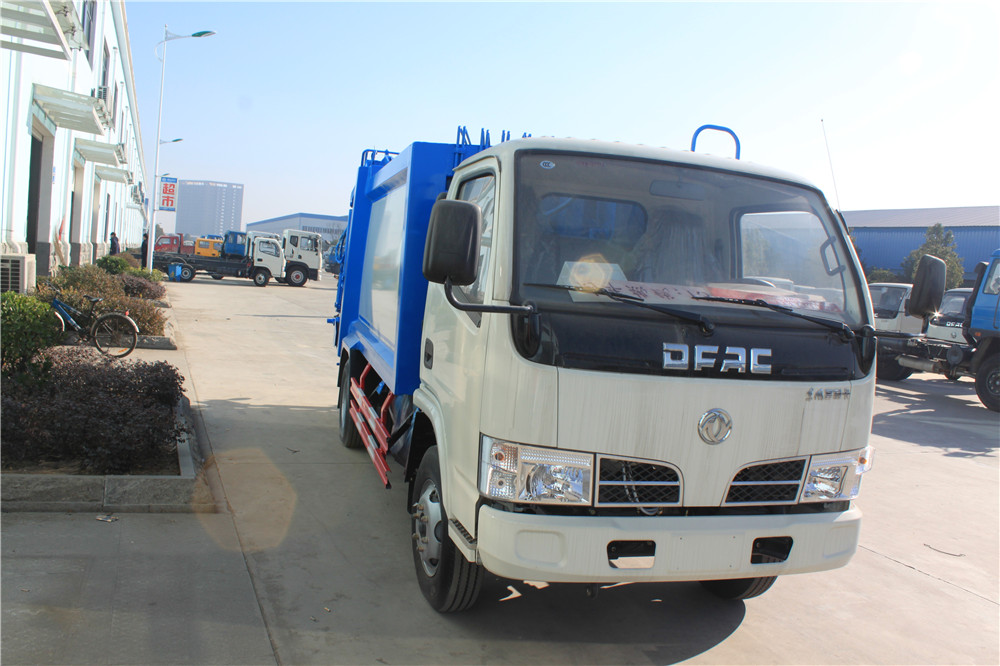 东风锐铃压缩式垃圾车上装配置:有效压缩容积5方,可装4-5吨生活垃圾,压缩倍率3-4倍,压缩后生活垃圾密度从0.36变为0.95以上,带污水收集箱,新款平板式箱体更美观,尾部 带密封橡胶垫,可防污水滴漏二次污染。尾部可带翻转斗或挂桶装置,可选装PLC一键操控系统,驾驶室和尾部双操控机构。